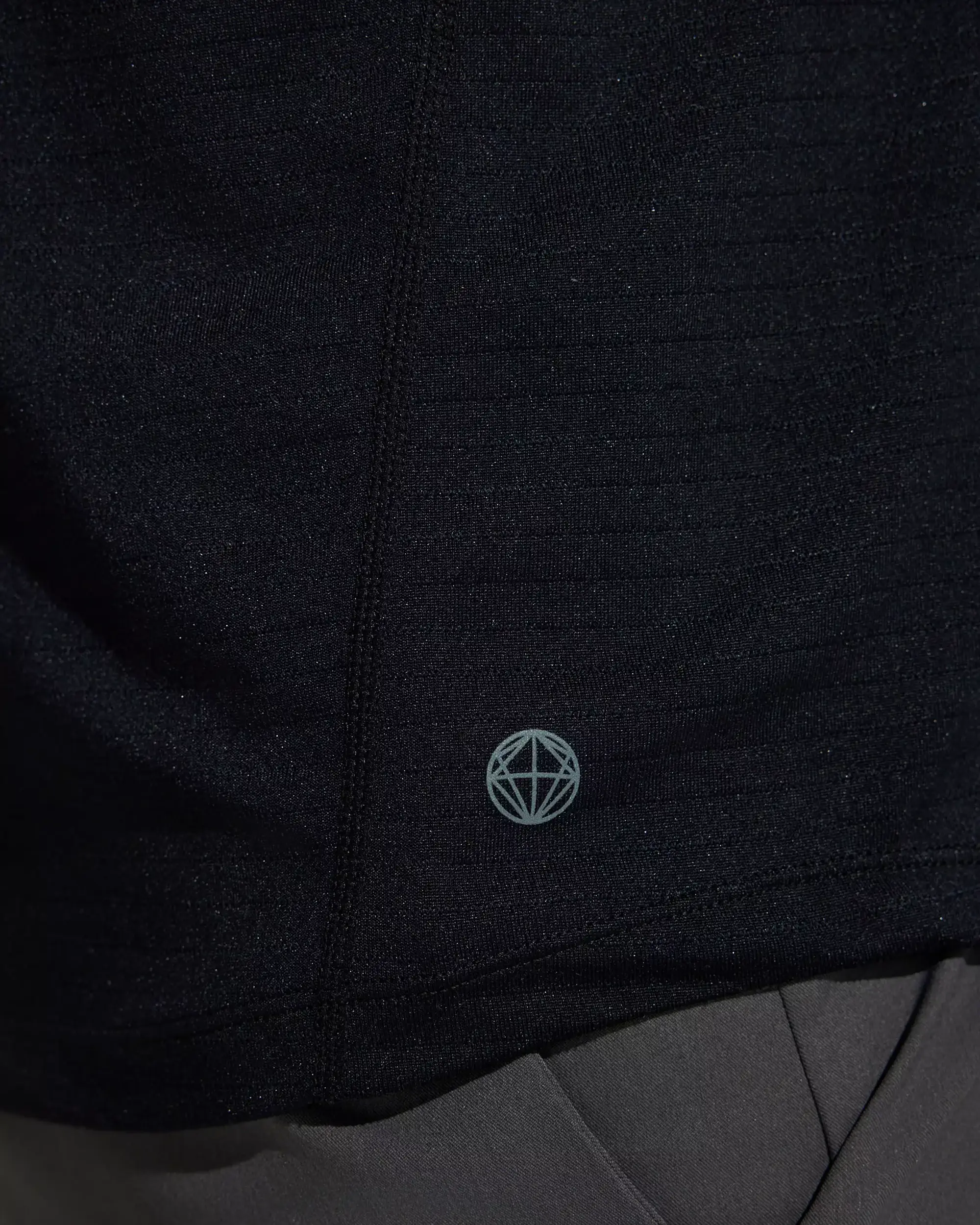 Crewneck short-sleeve tee in melange stripe jacquard with 55% recycled polyester. Raglan front with set-in back armholes, underarm gusset for ease of movement, and a longer back with a shaped hem. A lightweight staple built for sweat sessions, travel days, or everyday layering.