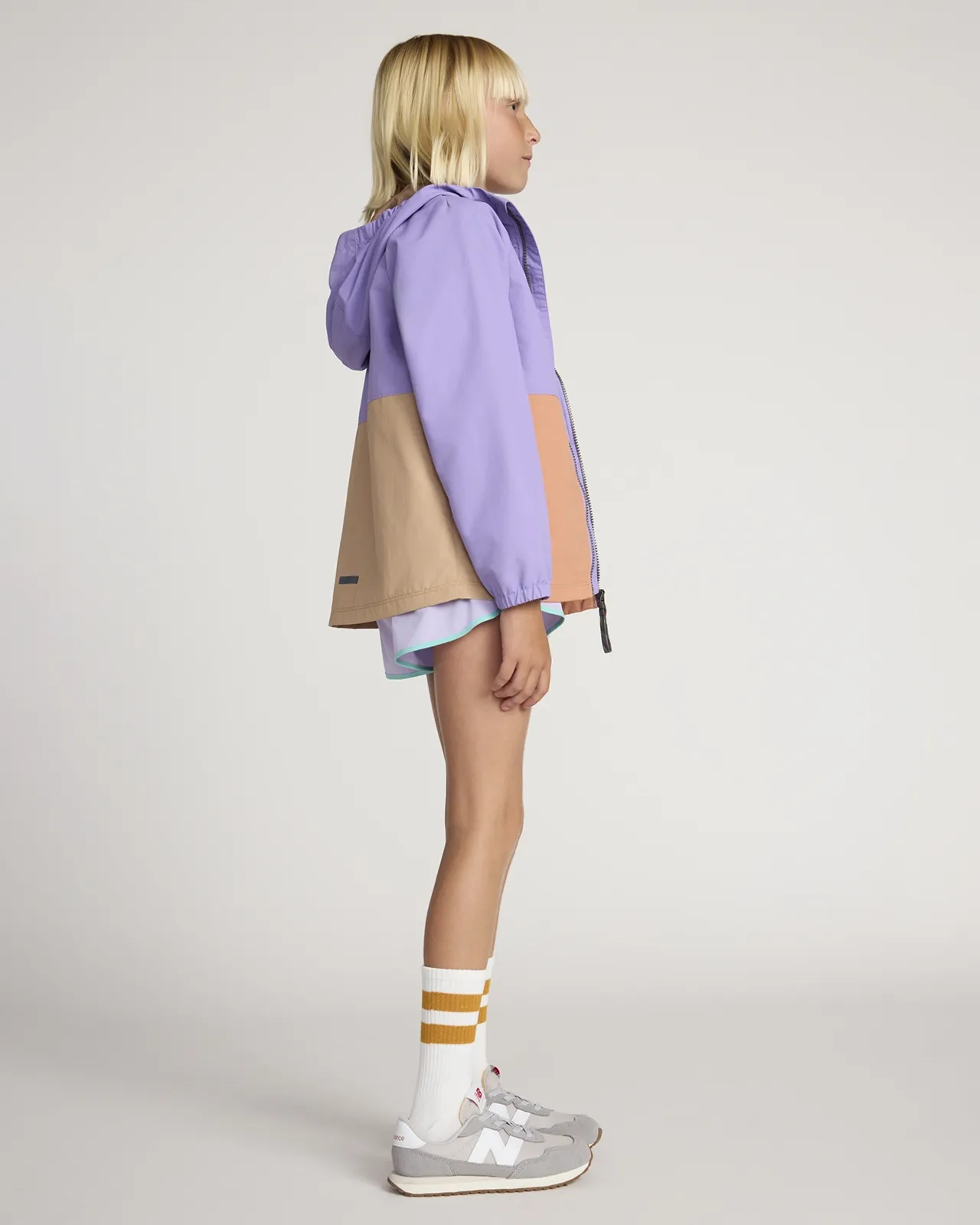The Kids' GRS Certified Recycled Nylon Colour-Block Rain Jacket - Purple/Orange